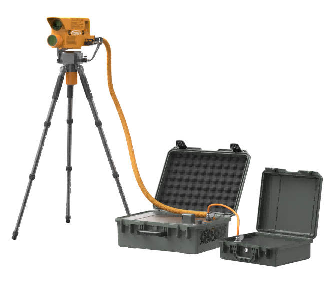光學(xué)破拆裝置內(nèi)置高能光纖激光器,能夠從地面發(fā)射激光對鋼板、鋁板、鋼筋、彩鋼瓦、樹木、塑料、馬蜂窩等進(jìn)行遠(yuǎn)距離切割清除。