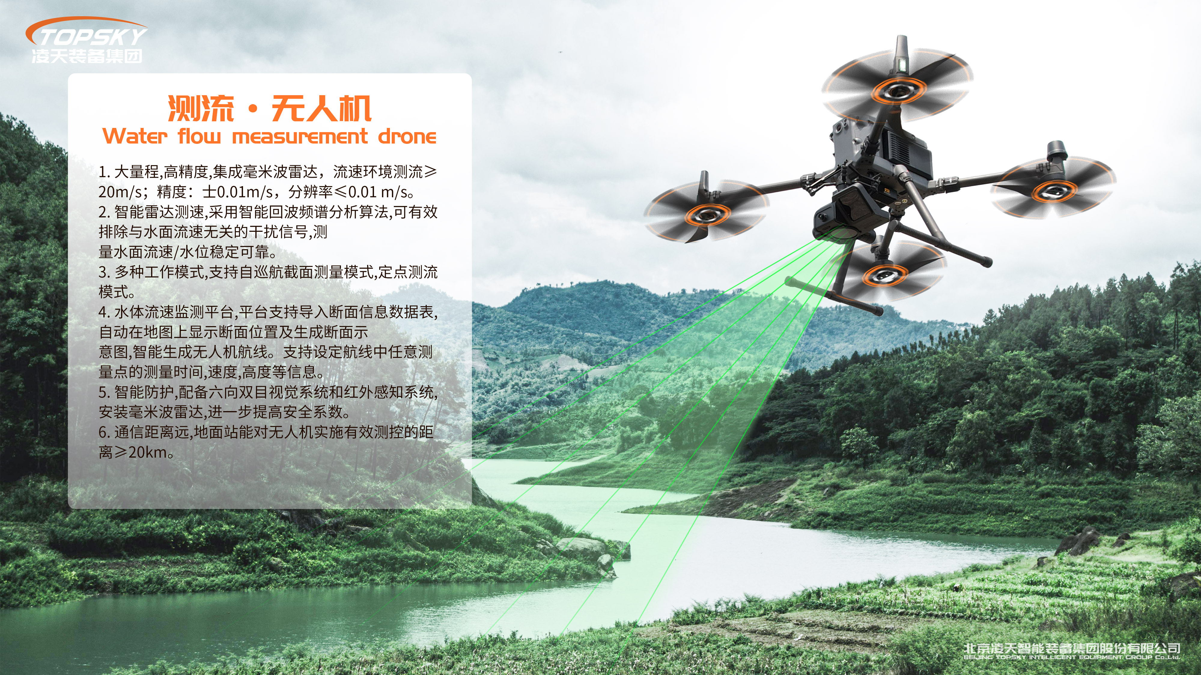測流無人機(jī)具備水體流速、流量監(jiān)測等系統(tǒng);用于暴雨洪水流動速度,特別是堤防潰口水流速度的快速探測。具備無人機(jī)水體流速、流量的監(jiān)測系統(tǒng),流速環(huán)境測流≥20m/s。