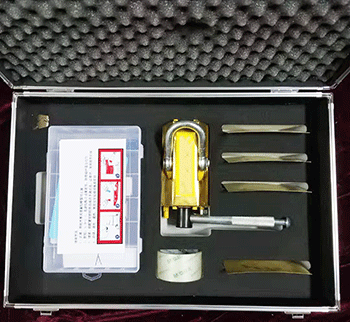 表面采用防爆鋁青銅材質(zhì),內(nèi)部利用超強(qiáng)永磁體對(duì)鋼鐵容器的吸附力,通過(guò)操縱手柄控制工作面上的磁通量,吸住泄漏的有磁金屬表面,達(dá)到工具和泄漏本體之間的壓合和釋放。仿形壓片,是在墊在磁壓堵漏器本體與泄漏口之間的薄板,用它可彌補(bǔ)二者之間的空隙,減小磁阻,改善堵漏膠的分布狀態(tài)??焖俣侣┠z調(diào)均勻后堆向泄漏口,同時(shí)扳動(dòng)通磁手柄,可阻止內(nèi)壓液體流出,讓膠體有時(shí)間凝固,數(shù)分鐘內(nèi)膠固化后,堵漏即告完成。堵漏膠和密封劑能承受水、油、液化氣、30%硫酸、30%鹽酸、氫氧化鈉、飽和氯化鈉溶液的侵蝕。