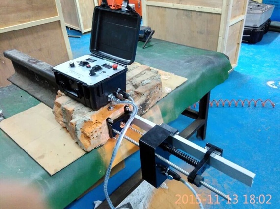 設備自帶電壓顯示,可以顯示電流,調(diào)節(jié)推進速度,以及檢測剩余電量;配有定深標尺,可監(jiān)測打孔深度及厚度。