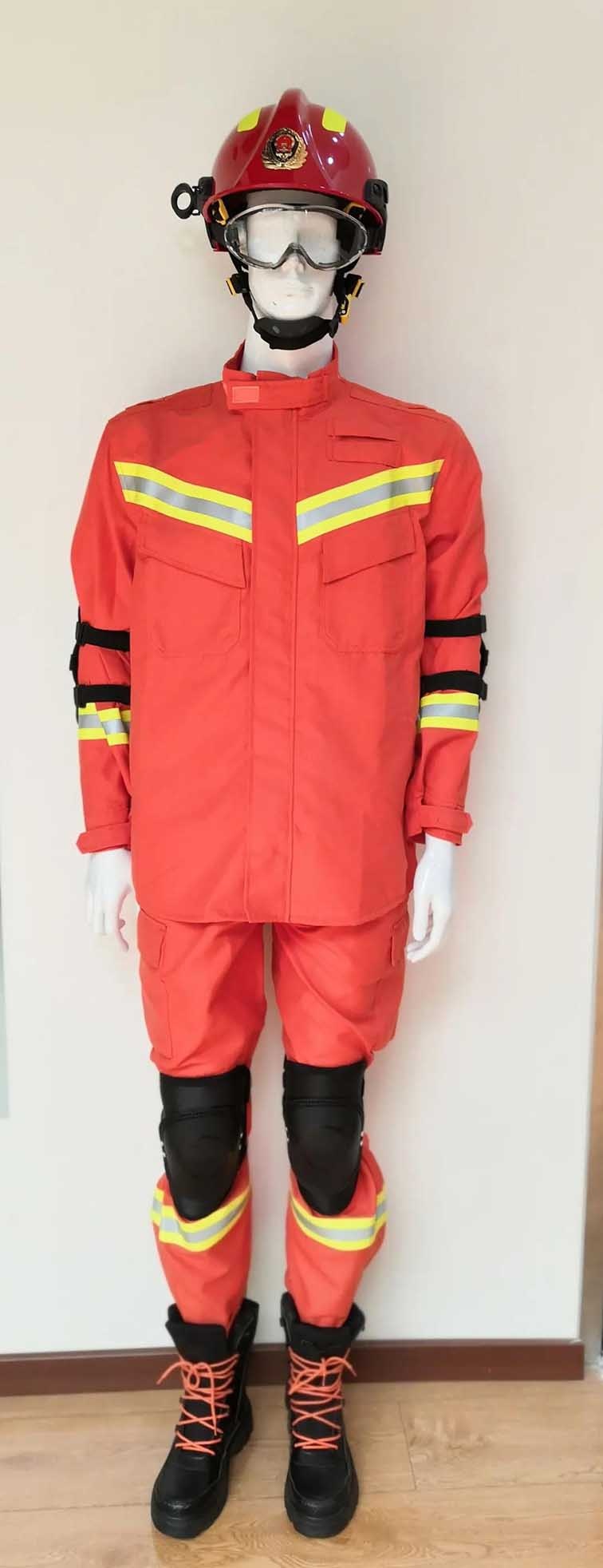 消防員搶險救援防護(hù)服用于建筑物倒塌、狹窄空間及攀登等救援現(xiàn)場的身體防護(hù),采用國際上通用的結(jié)構(gòu)形式,使用國外引進(jìn)的紡紗、織造、縫紉和檢測設(shè)備,用先進(jìn)的紡織、整理工藝加工而成。