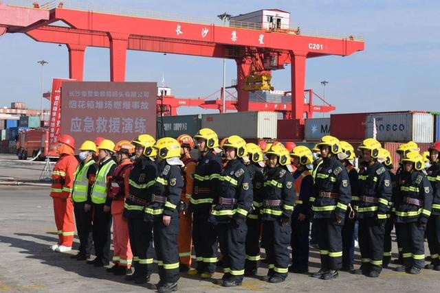 這是由省湘水集團(tuán)指導(dǎo),湖南省港務(wù)集團(tuán)主辦的一次煙花爆竹集裝箱堆場燃爆事故應(yīng)急救援演練。