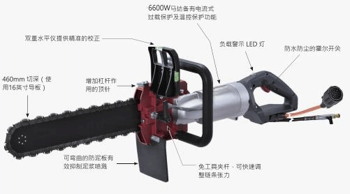 配備了6600W高頻永磁同步馬達(dá)的水泥鏈鋸,非常適用于大深度切削和無(wú)過(guò)度切削的精確切角!