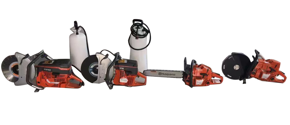 全功能切割鋸工具組主機功率5.8KWPJR-K 1270R無齒鋸A兩臺、功率3.7KWPJR-K770無齒鋸B兩臺、功率3.6KWPJR-365X機動鏈鋸兩臺、功率4.1KWPJR-S/ 115J機動雙輪異向切割鋸兩臺、以及鋸片,鏈條、冷卻水壺、火花塞、加油配比壺及其它附件組成。