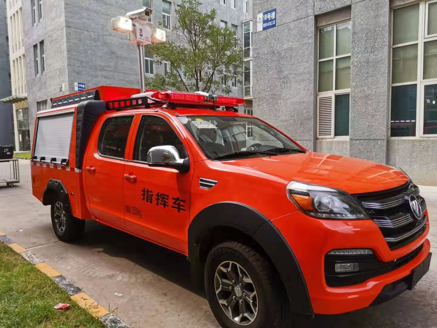 專門為特種機(jī)器人量身定做的一款機(jī)器人運(yùn)輸車,由皮卡車改裝,區(qū)別于傳統(tǒng)意義上大型運(yùn)輸車,體積更小,動力更足。車廂設(shè)計(jì)有升降照明系統(tǒng),解決了救援現(xiàn)場能見度低的問題,1.2-1.8米升降高度,可滿足不同照明需求。車體頂部裝有4G圖像傳輸系統(tǒng),可將現(xiàn)場情況實(shí)時傳輸?shù)街笓]部,有利于指揮現(xiàn)場調(diào)度。配有一體化機(jī)器人裝運(yùn)梯,最大承壓≥600Kg。后箱四周配有一圈小型照明系統(tǒng),可用于晚間或光線昏暗等環(huán)境。后箱設(shè)計(jì)有獨(dú)立儲物架,可放置機(jī)器人配套設(shè)備。兩側(cè)卷閘窗設(shè)計(jì)方便拿用。