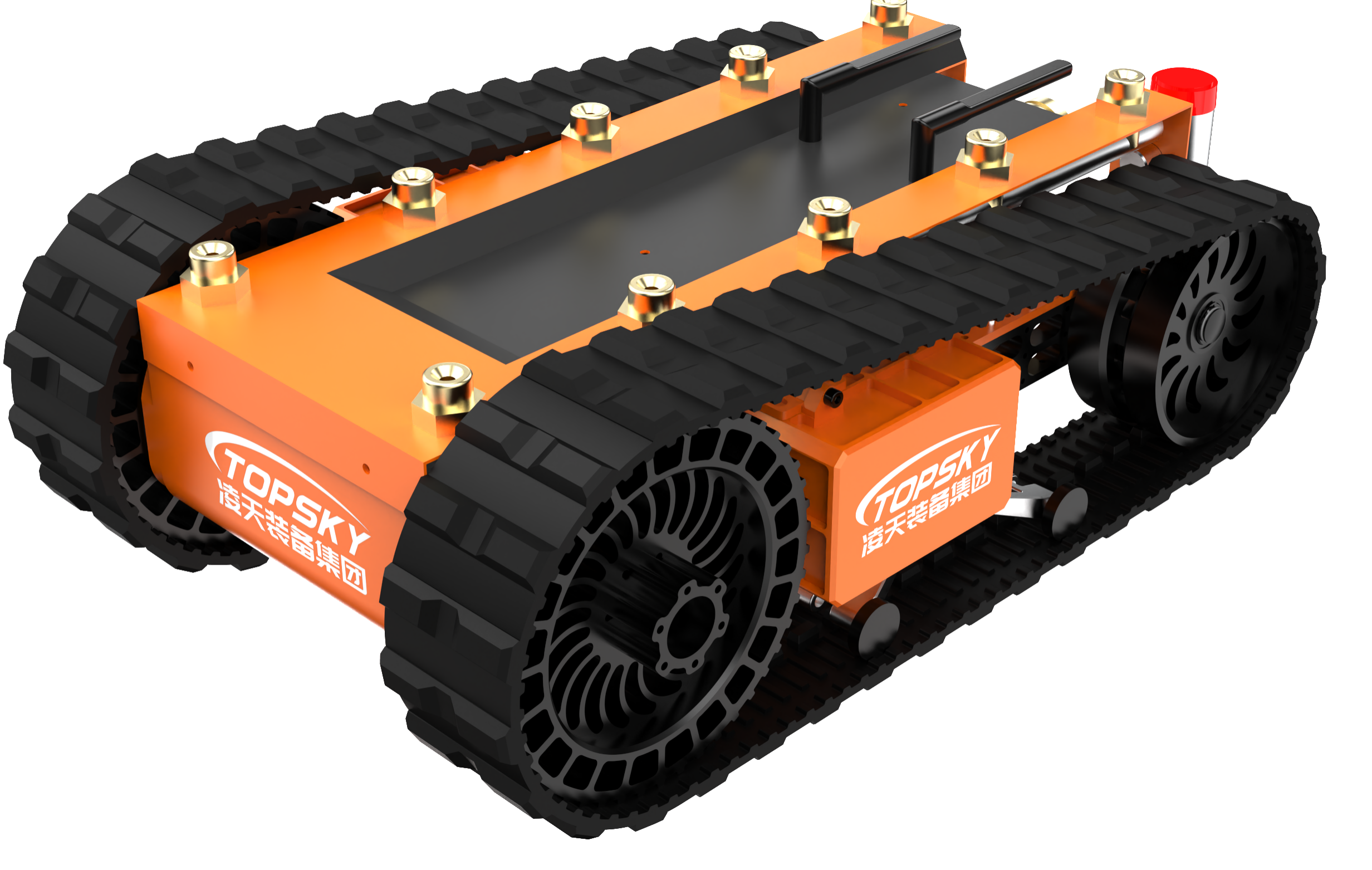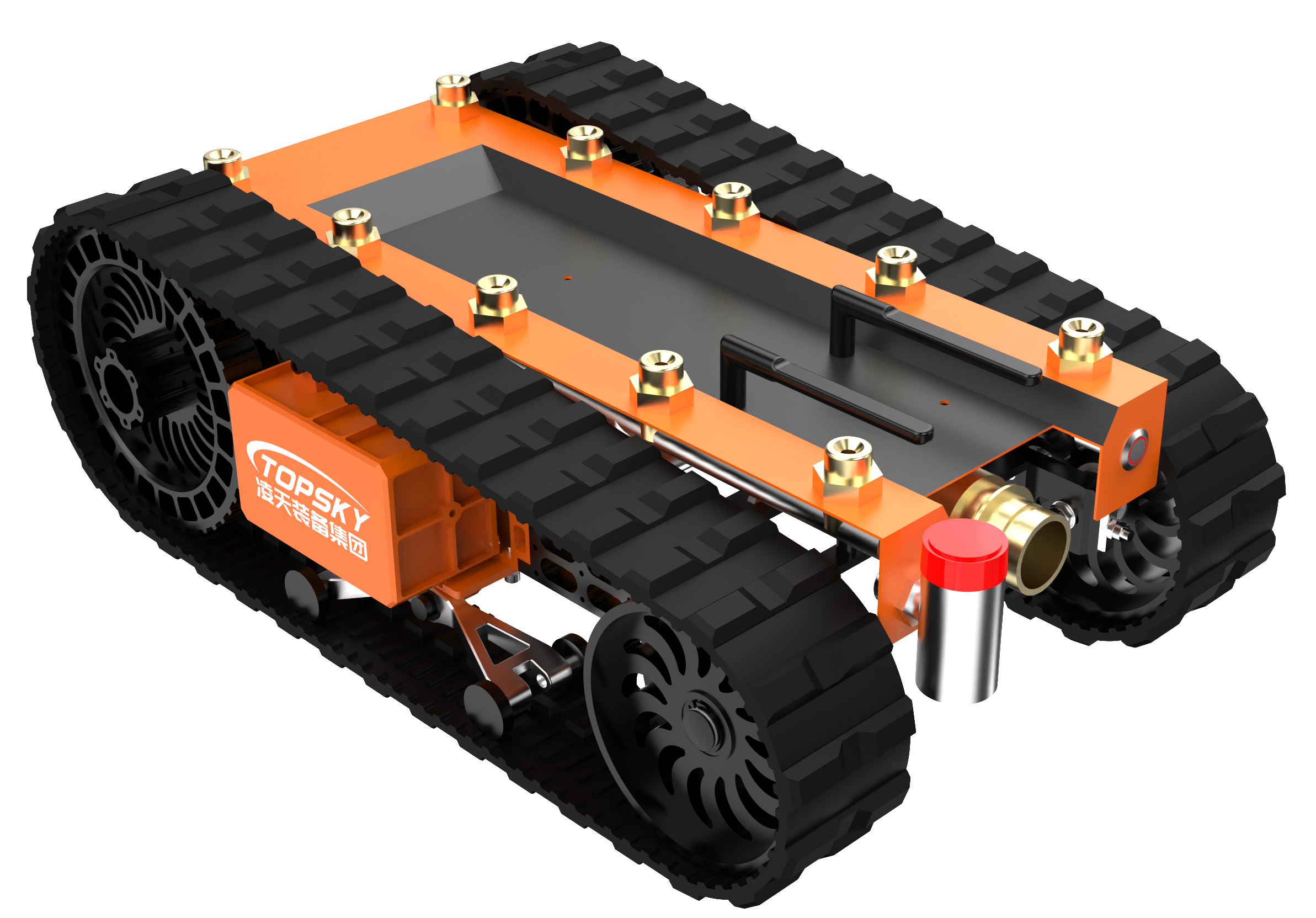 1.主要功能:履帶式防爆機器人底盤采用鋰電池電源作為動力源,使用無線遙控的方式遠距離操控,可搭載形式多樣,原地旋轉設計可使得運更靈活。