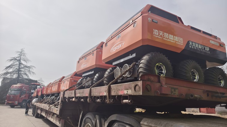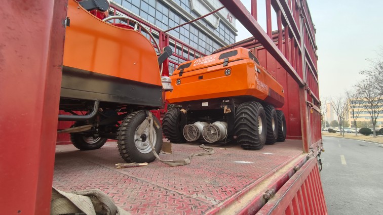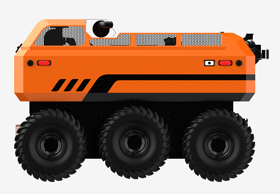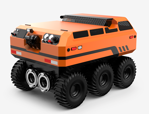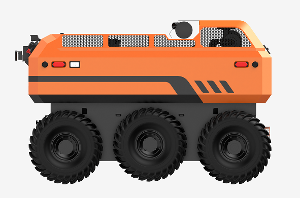 采用6×6輪式底盤,液壓驅動,裝有真空輪胎,另加配水下推進器,增加水中行進效率,水陸兩棲,可全地形行駛;