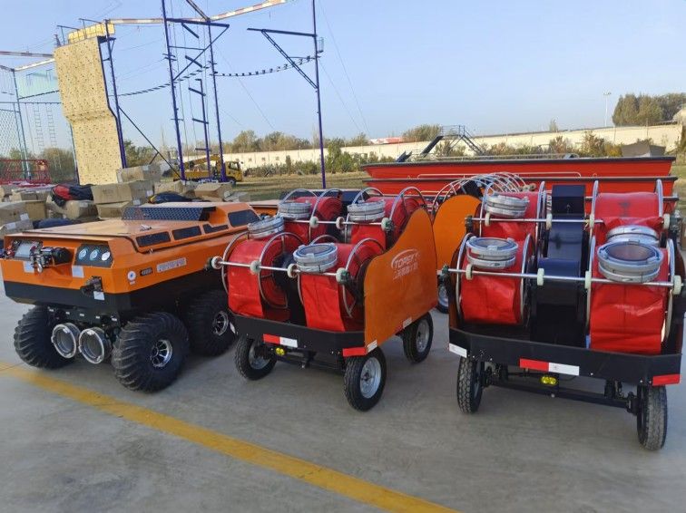 供排水機器人配有大口徑水帶收放車,采用電動快速鋪設系統(tǒng),操作簡單,實用性強等特點,解決了人力收放水帶的不便利性,增加了救援時間。