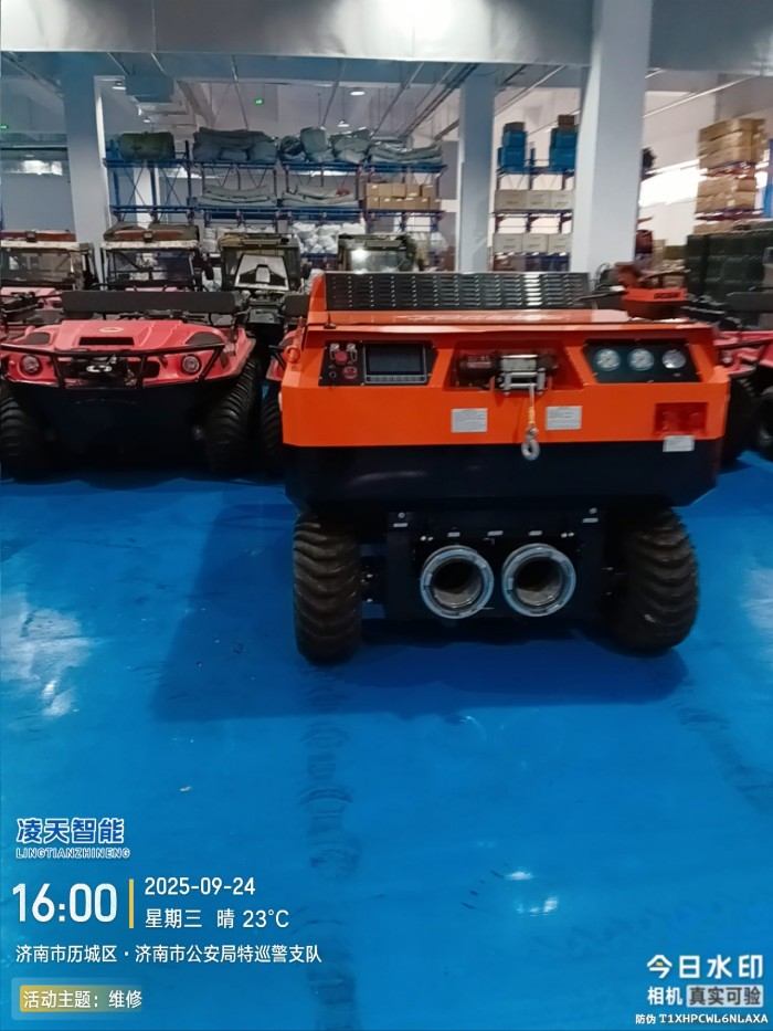 當城市發(fā)生洪澇災害,導致地下車庫、地鐵、隧道等蓄水嚴重時,排澇破拆一體化機器人可實現快速排洪救援。本產品具備排水、音視頻偵察、水中漏電偵察、災區(qū)環(huán)境偵察等功能。本產品配套的水帶車可同時收卷2盤DN200大口徑水帶。機器人配備的水泵具有排污、放水、檢修等大口徑端口設置。