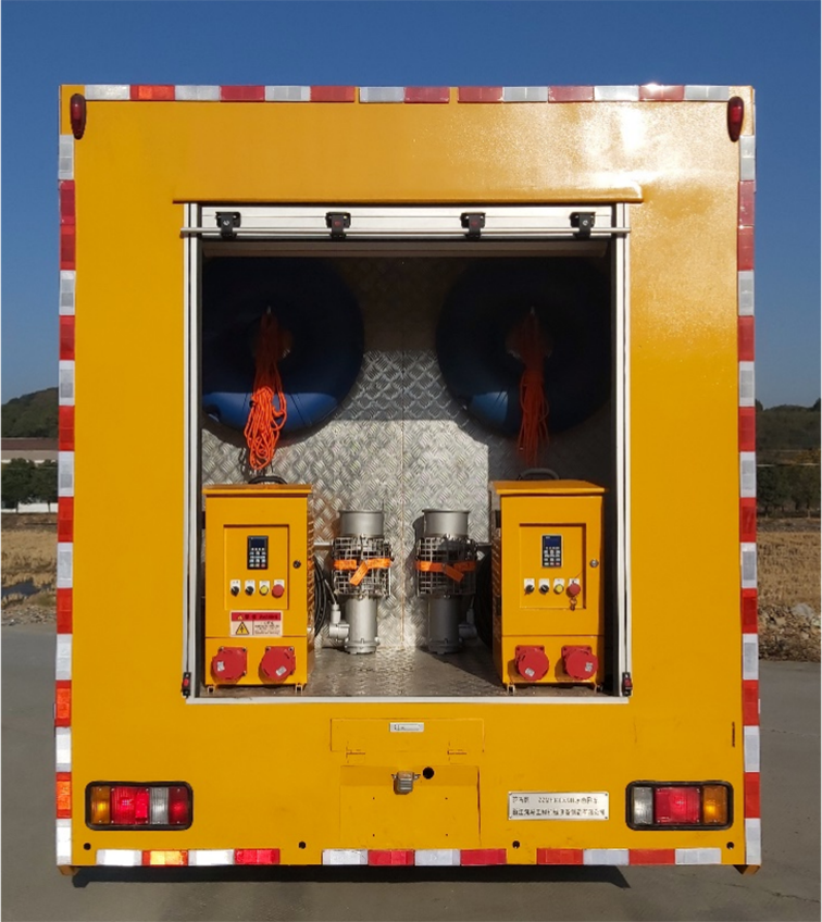 單排排澇車(1200m3),是在慶鈴二類汽車底盤的基礎(chǔ)上依據(jù)排水車的特點,配置柴油發(fā)電機(jī)組、兩臺大流量便攜式潛水泵及控制系統(tǒng)、照明系統(tǒng)等設(shè)備改裝成型的專項作業(yè)車。整車尺寸較小,通過性較強(qiáng),廣泛適用于各類搶險現(xiàn)場。