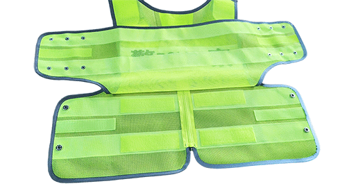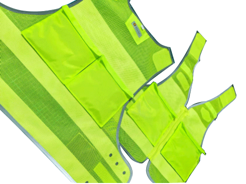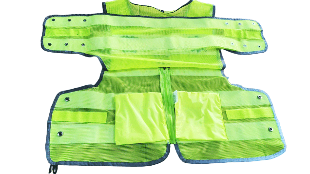 具有整潔美觀,平服的特點,線路規(guī)整,左右對稱,無開線、斷線、跳線、毛露、線頭、污漬、殘疵。產(chǎn)品基底顏色為熒光黃色;反光帶顏色為銀白色;縫紉線顏色應(yīng)與縫合部位的基底材料或反光材料顏色相匹配;前后晶格標(biāo)識可絲印定制文字