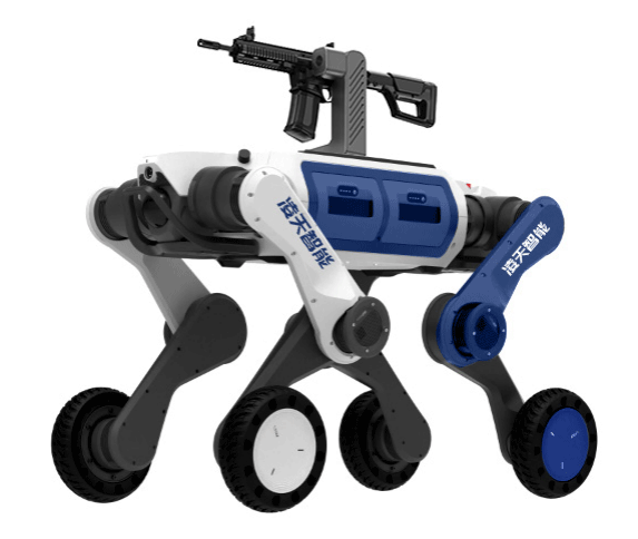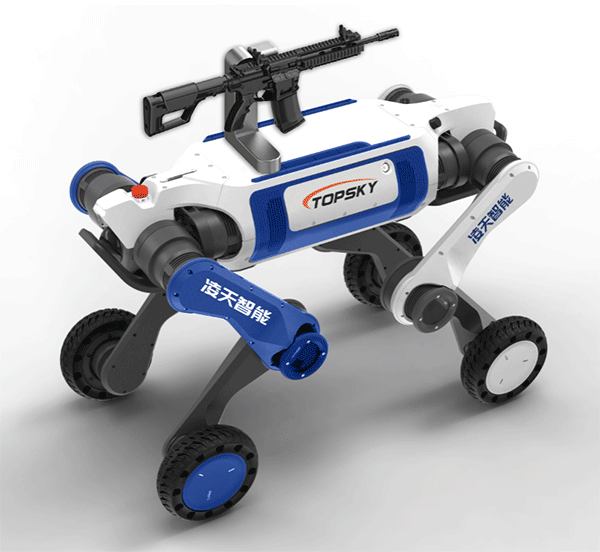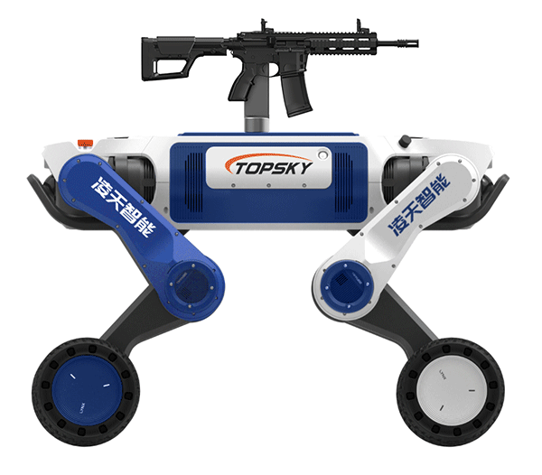 武裝打擊輪足機器狗主要用于軍事和邊防領(lǐng)域,具備攻擊和防御能力,應(yīng)用場景廣泛。