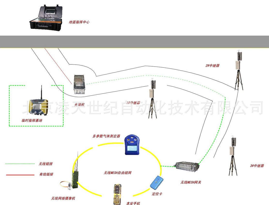 它不需要依賴管道等介質(zhì),不同與泄露通信,特別適合于搶險救災,與國內(nèi)外同類產(chǎn)品相比。該裝置輕巧便攜,能在隧道、地下建筑和復雜建筑群的地方無線傳送語音和災區(qū)環(huán)境信息。無線發(fā)射器及攝像頭,由救護隊員隨身攜帶,它可以實時地將現(xiàn)場的音視頻信息傳輸?shù)交?,基站再將信號傳到地面指揮中心。井下災區(qū)的救護隊員、井下救援基地和地面指揮中心之間可進行實時信息溝通,救援全過程的圖像、語音資料可完整儲存并回放,為今后進行事故原因分析、總結(jié)搶險救災經(jīng)驗教訓提供基礎資料。若同時連接互聯(lián)網(wǎng),救援指揮中心及指導專家可實時了解災區(qū)救援情況。