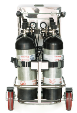 具有耐高溫、阻燃、絕緣、防腐、防水、氣密性好等性能。通過一組壓縮空氣瓶向呼吸器使用者長時間提供空氣,可單人使用,也可同時供兩人使用。