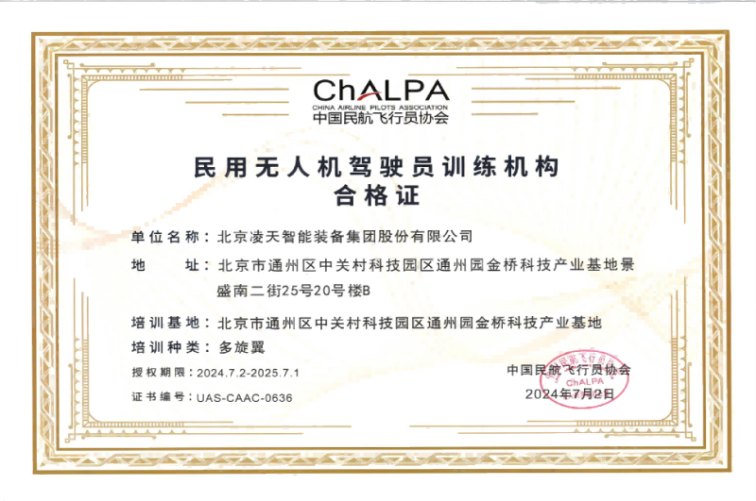 資格類民用無人機(jī)駕駛員訓(xùn)練機(jī)構(gòu)合格證(北京凌天)
