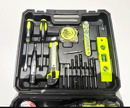 這款工具箱集多種實(shí)用工具于一身,包含尖嘴鉗、手電鉆等。尖嘴鉗能在狹小空間靈活操作,用于夾捏、剪切小物件;手電鉆可輕松應(yīng)對(duì)木材、塑料等鉆孔作業(yè)。此外還有其他常用工具,能滿足日常家裝維修、簡(jiǎn)易手工制作等多樣需求 。