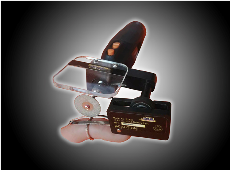 指環(huán)切割器是便攜式戒指指環(huán)剪切破除輕型破拆工具裝置,采用電動(dòng)、手動(dòng)等多種工作方式破拆摘除戒指環(huán)。操作簡(jiǎn)單安全快捷,不會(huì)傷到手指,可切割不銹鋼、鐵、金、銀、銅、鋁、玉、瓷、玻璃及復(fù)合材料等。