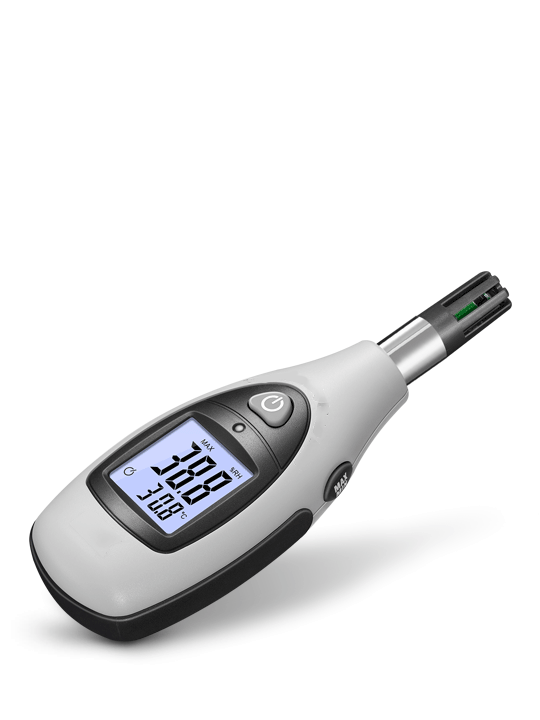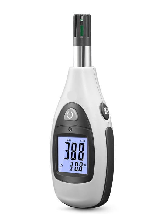 本產(chǎn)品具有小巧便攜、高對比度帶感應(yīng)背光LCD顯示屏、舒適手持感等特征;全新低功耗芯片設(shè)計(jì),輔以科學(xué)算法,快捷精準(zhǔn)的測量空氣溫度和濕度。