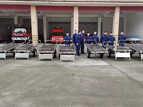 1.組合式電動地震救援運輸車能為消防員在地震、道路救援尤其高速公路交通阻塞或道路崎嶇情況下攜帶裝備、物資,徒步、負(fù)重、長途跋涉完成作戰(zhàn)救援任務(wù)提供機(jī)動、持久、高效運輸力,也適合在大型救援現(xiàn)場往返運送作戰(zhàn)救援裝備、物資、滅火藥劑。
